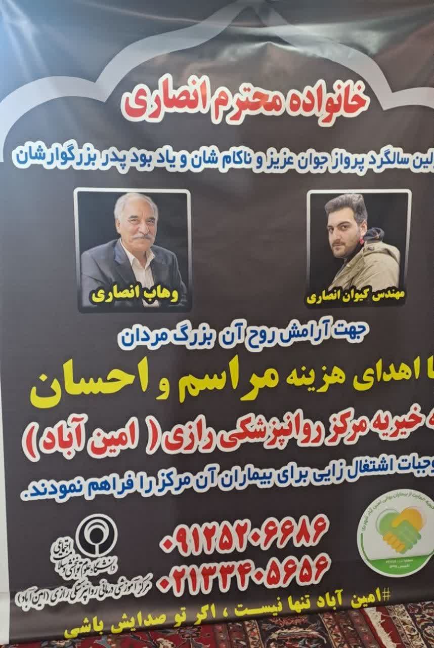 در آستانه سالگرد درگذشت کیوان انصاری، جوان ۳۰‌ساله، خانواده وی تصمیم گرفتند به جای برگزاری مراسم پذیرایی، بودجه مورد نظر — معادل ۴۰۰ میلیون تومان — را به ایجاد یک کارگاه تولیدی در مجموعه بیمارستان رازی امین‌آباد اختصاص دهند. این کارگاه با هدف توانمندسازی و اشتغال‌زایی برای بیماران در حال درمان یا ترخیص‌شده راه‌اندازی خواهد شد.